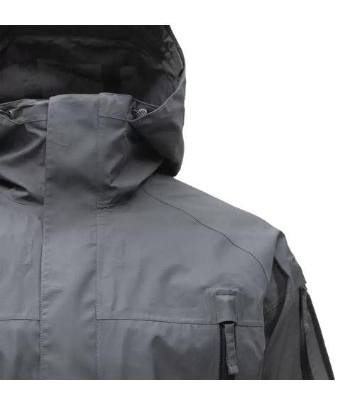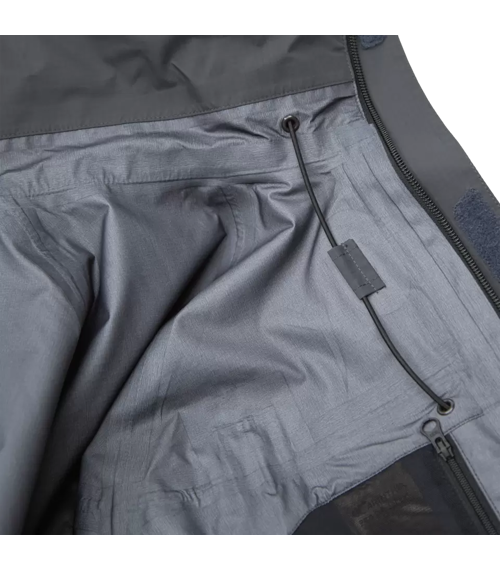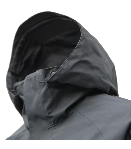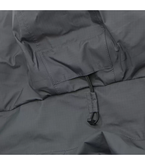 - nastavitelná kapuce, stahování pomocí šňůrek vyvedených v bočních kapsách, kapuce je ušitá tak, aby se dala obléci přes helmu