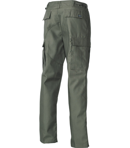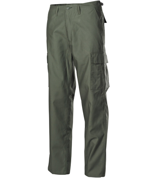 Die klassische US ARMY Hose! 2 seitl. Einschubtaschen, 2 Gesäß-Pattentaschen, 2 seitl. aufgesetzte Bein-Pattentaschen, Bandzug am Beinende, verstellbare Taillenweite, doppelte Knie, doppelter Hintern, Knöpfe am Hosenschlitz, 65 % Polyester, 35 % Baumwolle