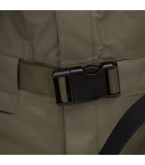 • pružný pas s možností úpravy pomocí integrovaného opasku, zapínání kovovou sponou