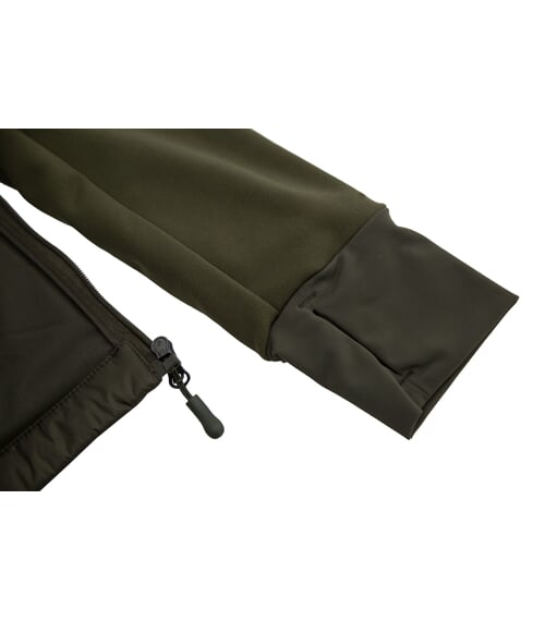 - zip s tahačem pro lepší manipulaci v rukavicích, zip podložen légou jako ochranou proti únikům tepla, léga s úpravou proti poškození (prodření) od tahače