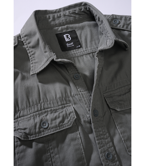 • košile volného střihu s dlouhým rukávem v ležérním mírně opraném vzhledu.