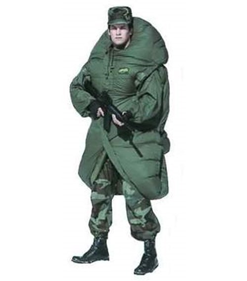 Otevřením spacáku pomocí zipů ve spodní části lze vysunout nohy a ve spacáku se pohybovat jako v kabátu. Rukávy jsou ukryty mezi izolačními vrstvami.
