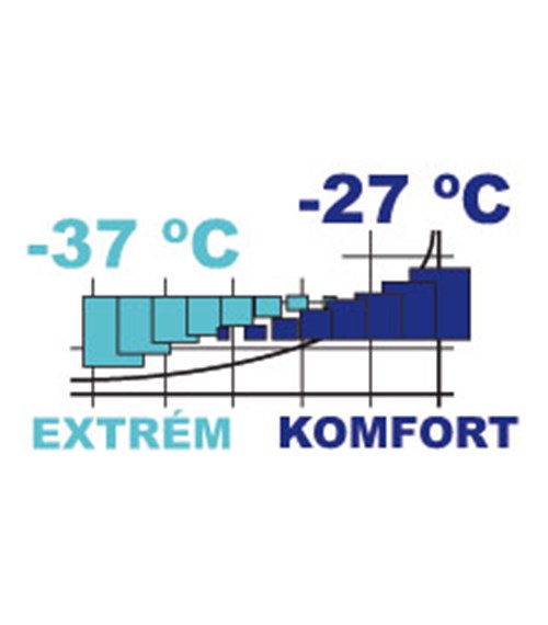 Teplotní specifikace dle ISO 23537-1/EN 13537: komfort -10,7°C (ženy), -18,4°C (muži) extrém -39,7°C