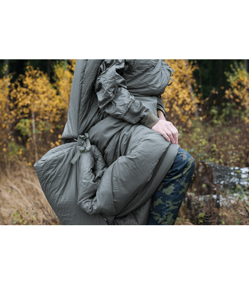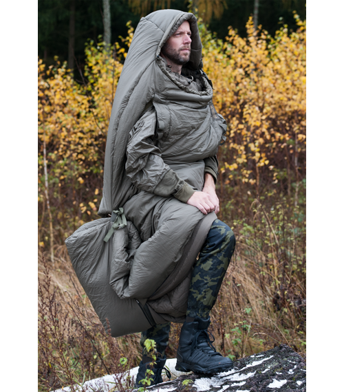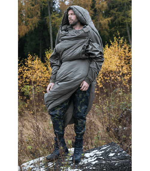 Otevřením zipu v dolní části spacáku a připevněním tohoto konce pomocí popruhů lze ze spacáku vysunout nohy a pohybovat se jako v kabátu. Rukávy jsou ukryty mezi izolačními vrstvami - nejsou zateplené. Alternativně mohou být tyto prostory využity jako úložné prostory např. pro čelovku, powerbanku atp.